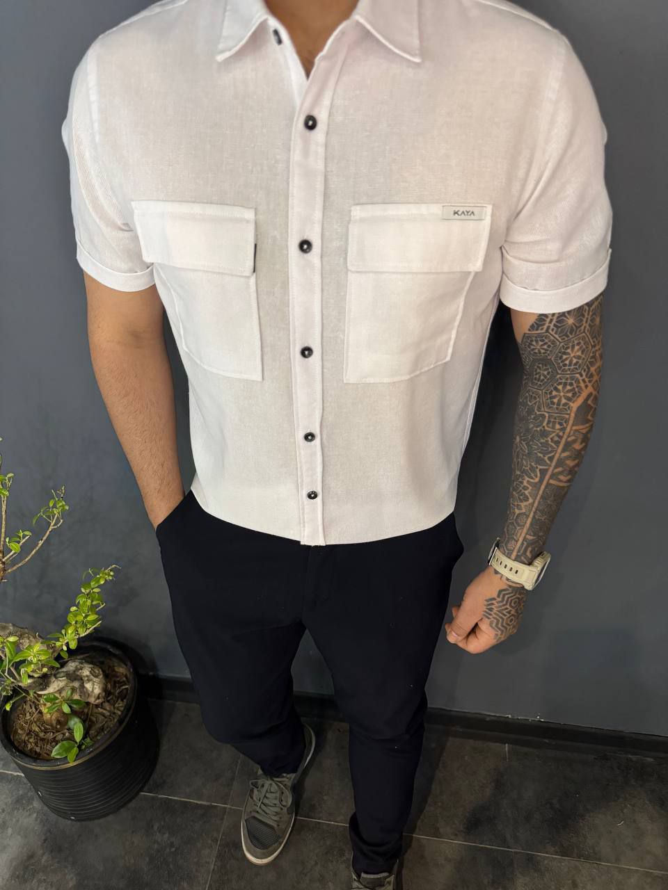 پیراهن مردانه کنفی دو جیب پارچه ترک