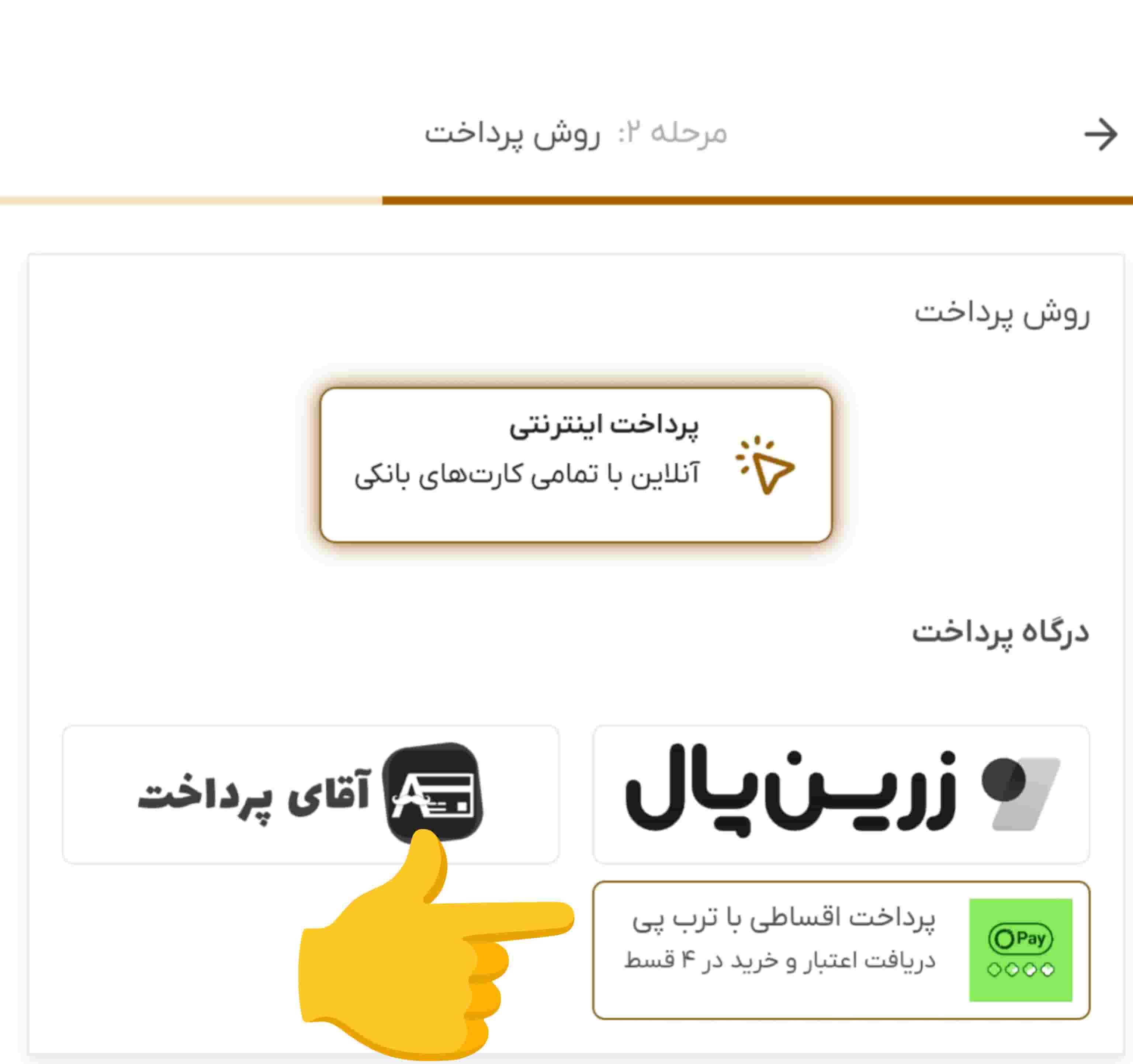 - در مرحله پرداخت، گزینه «پرداخت با تربپی» را انتخاب کنید.