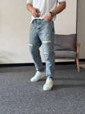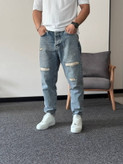 شلوار مام فیت آبی زاپدار – راحت و خوش استایل