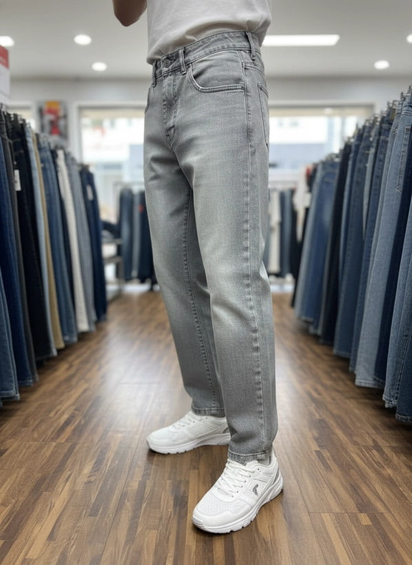 شلوار مام فیت مردانه طوسی بدون زاپ