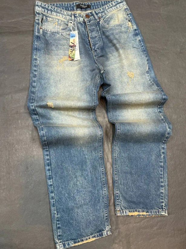 شلوار بگ مردانه آبی شست صحرایی زاپدار
