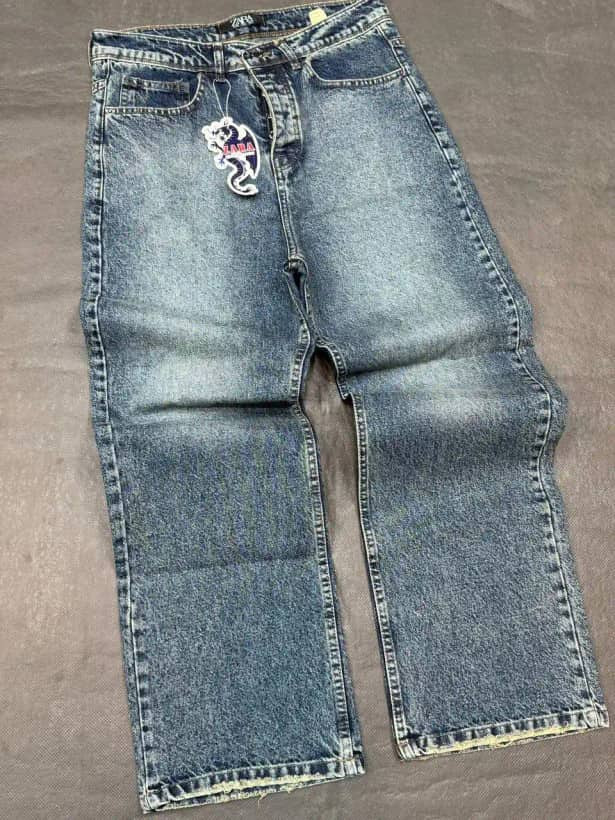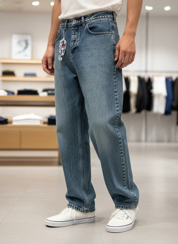 شلوار بگ مردانه آبی نفتی شست خورده