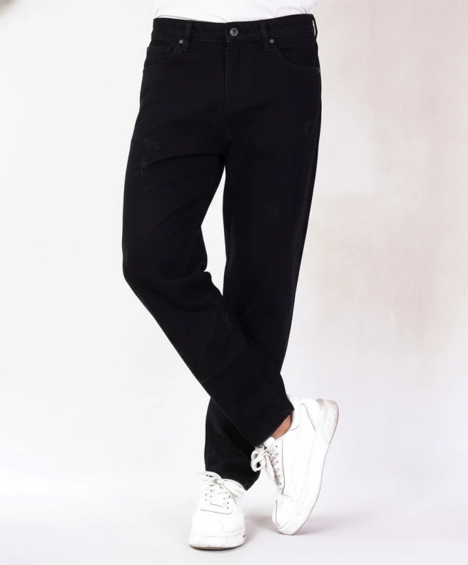 شلوار مام فیت مشکی مردانه پارچه گرم بالا
