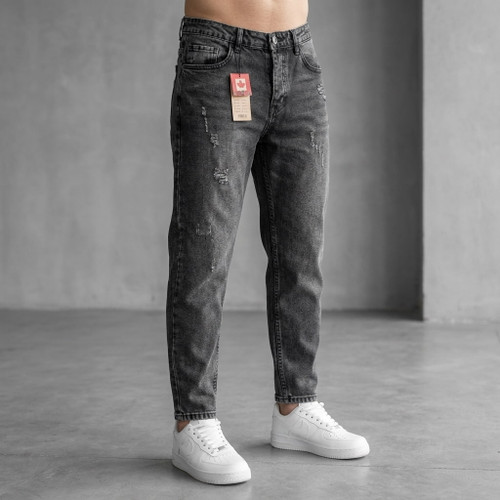 شلوار مام فیت مردانه ذغالی زاپدار | پارچه گرم بالا | دوخت با کیفیت