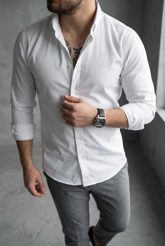 پیراهن مردانه سفید آستین بلند | پارچه دوشین کیفیت بالا